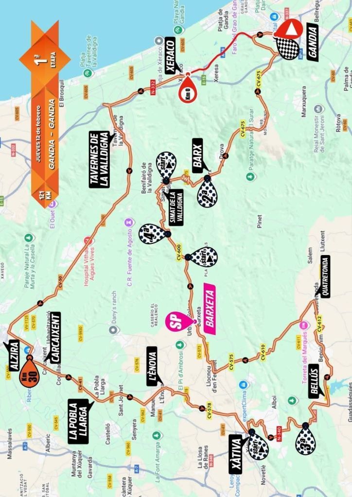 1ª etapa: 12 febrero. Gandía – Gandía 121 km. 14h.