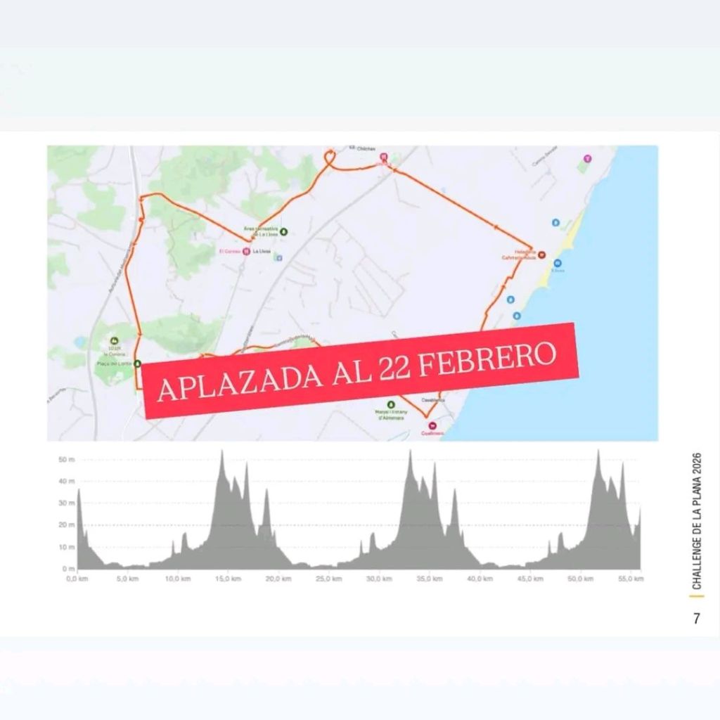 La 3ª etapa de la Challenge de la Plana, prevista para el 14 de febrero en Almenara, ha sido aplazada debido a las condiciones meteorológicas adversas y a la previsión de fuertes rachas de viento en la zona.