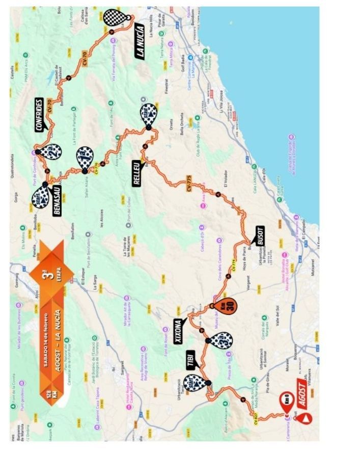 3ª etapa. 14 de febrero. Agost – La Nucía 128 km. 12h. SUSPENDIDA