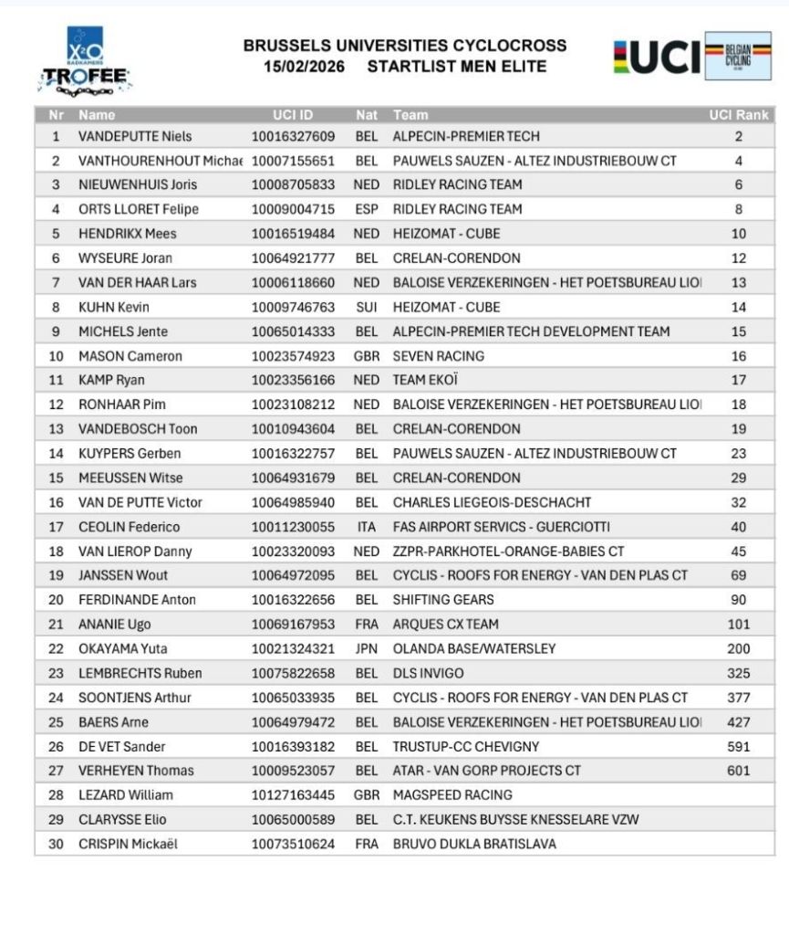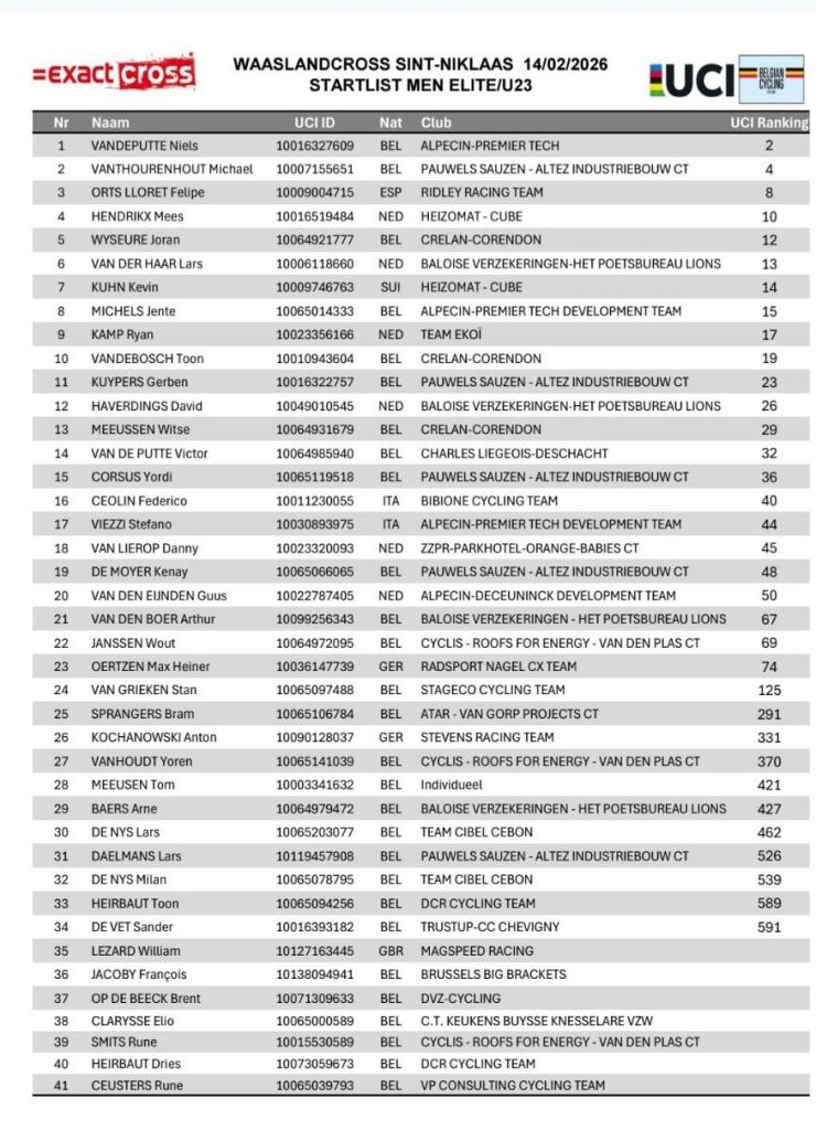 Hoy sábado se disputa el Exact Cross Sint-Niklaas – Waaslandcross 2026. Con Niels Vandeputte como principal candidato a la victoria. Michael Vanthourenhout debe ser el gran rival. Felipe Orts aspira al podio y no se descarta un sitio en lo más alto del cajón.