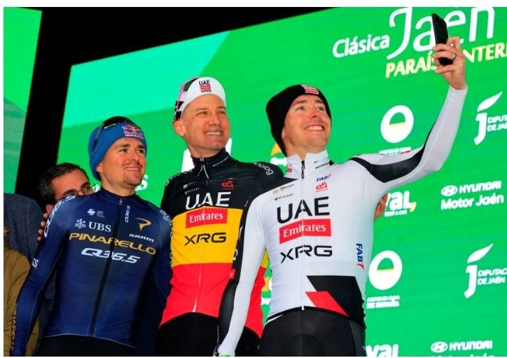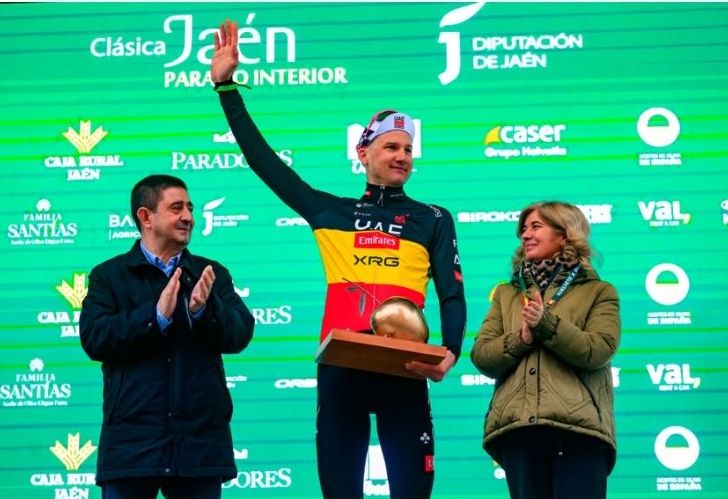 Tim Wellens triunfa en Úbeda en la Clásica Jaén Paraíso Interior tras una eterna cabalgada en solitario. El campeón belga, con un ataque a 54 km, conquista la prueba andaluza tras estar varios años cerca de lograrlo. Tom Pidcock y Benoît Cosnefroy -tras la sanción a Jan Christen por cerrar en el sprint a Van Gils- completan el podio. Segundo en 2022, tercero en 2023 y cuarto en 2024, Wellens conquista por fin la victoria en Jaén, y de paso remata un nuevo día de gloria para el UAE Team Emirates, que esta mañana vestía vestirse de líder en el UAE Tour a Isaac del Toro, y que ya suma 12 éxitos en 2026, antes incluso de que su gran líder haya hecho su debut en la temporada.