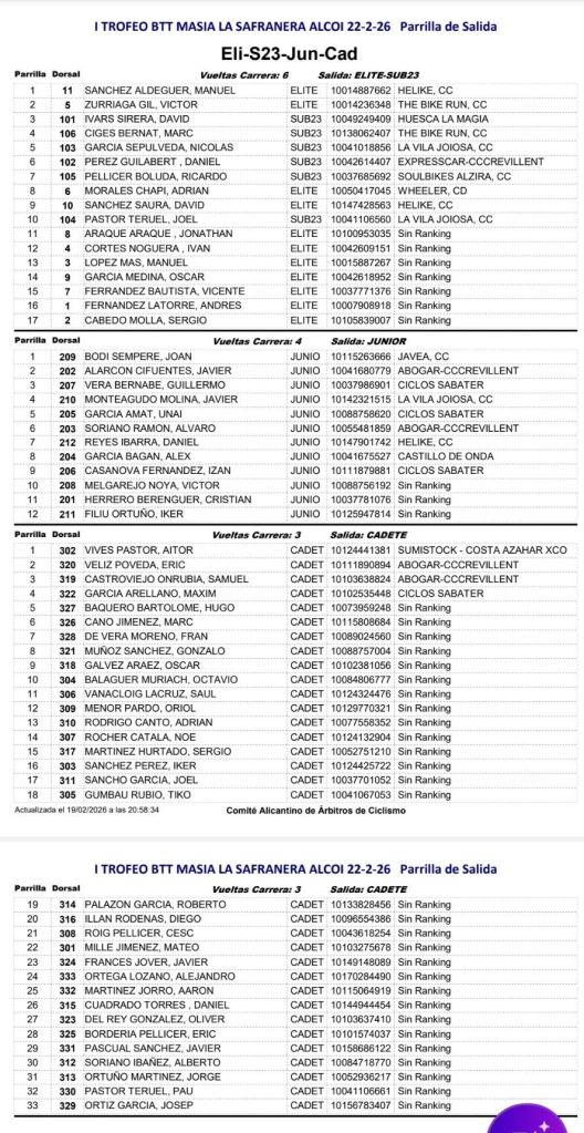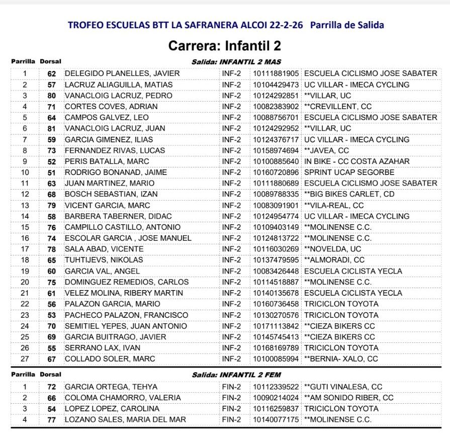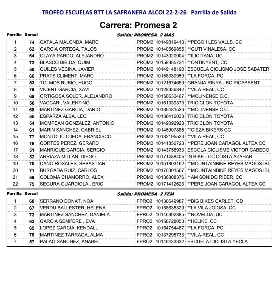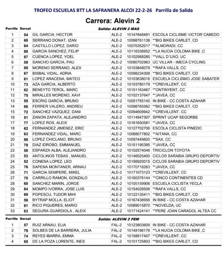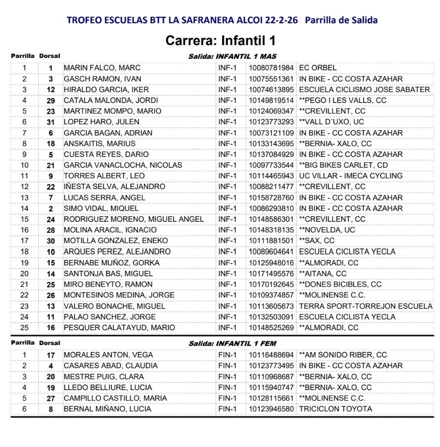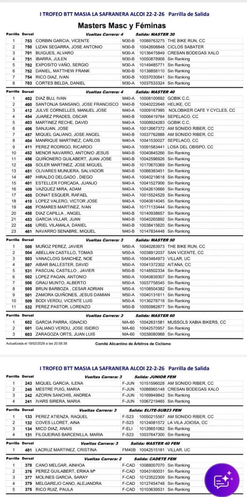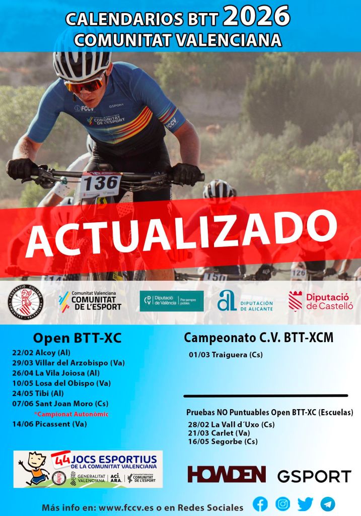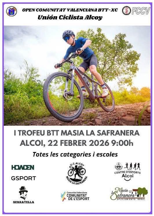 El I Trofeu BTT Masia La Safranera se celebrará en Alcoy el domingo, 22 de febrero de 2026, a las 9:00h. Participan todas las categorías y escuelas. Será la primera prueba del Open BTT-XC de la Comunitat Valenciana.