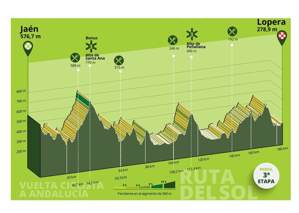 3ª: Viernes 20 febrero. Jaén (Jaén) (11:15)-Lopera (Jaén) (15:45), 170 km