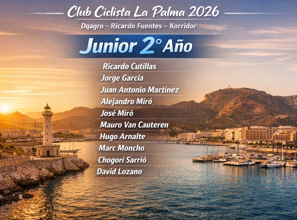 El nuevo proyecto de Jesús Buendía ya está en marcha y este sábado se estrena en Don Benito en la primera prueba de la Copa España Júnior. La escuadra del Club Ciclista La Palma-Cartagena se denominará en esta campaña 2026 Dqagro – Ricardo Fuentes – Korridor. Cuenta con los júnior de primer año Diego Cervantes, Héctor Nieto, Daniel Fernández, Carlos Mañas, Borja Ferrándiz, Andreu Galindo, Víctor Sánchez y Anthony Guerra.