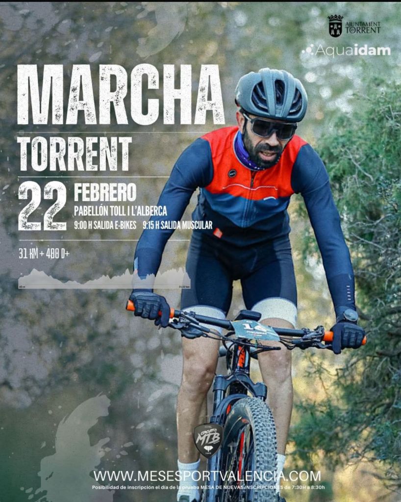 El domingo, 22 de febrero, se disputa la Marcha Torrent, cuarta prueba del Circuito MTB Valencia 2026. Serán 31 kilómetros de recorrido con un desnivel positivo de 488 metros. Xavier Calaf (Ulevel) llega como líder del Torneo.