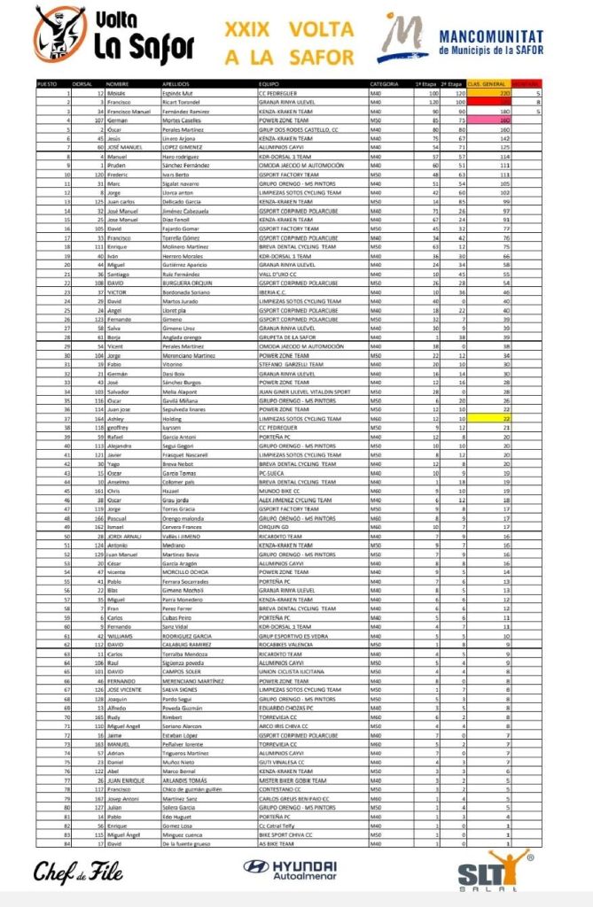 Etapa 2. 1 de marzo. Benirredra – Gandía. 52Km. Clasificaciones