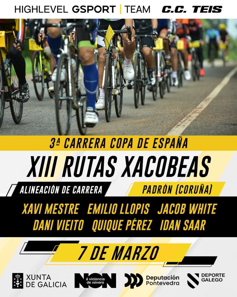 La Copa de España Élite-Sub23 regresa este sábado 7 de marzo a Padrón con motivo de la celebración de la XIII Rutas Xacobeas, tercera prueba del circuito nacional que llega liderado por el ciclista del Cortizo Luke Valentí, que se impuso en el Circuito Guadiana y fue 7º en el Trofeo Guerrita. Segundo es Diego Gutiérrez y cuarto Dani Cepa.