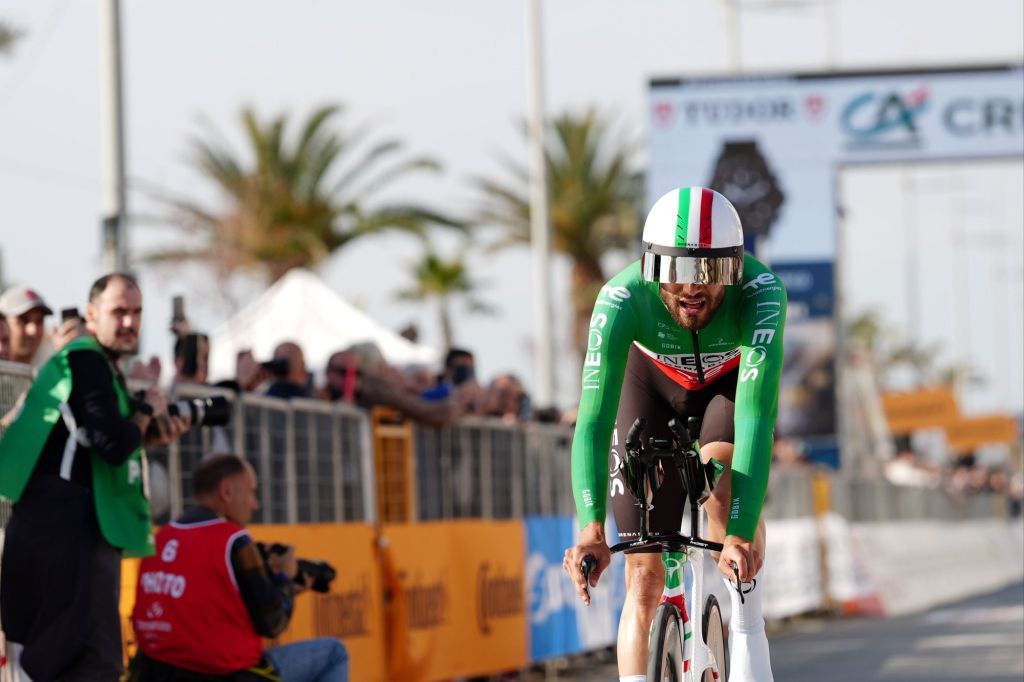 La 61ª edición de la Tirreno-Adriático comenzó con una contrarreloj individual en la localidad toscana de Lido di Camaiore, con un recorrido totalmente llano de 11,5 km compuesto de dos largas rectas junto al mar, con una curva de 180º. Un terreno ideal para que los especialistas y que se adaptó muy bien a las características de Filippo Ganna. El recordman de la Hora y dos veces campeón del Mundo de la especialidad rodó a una media de 56,868 km/h para marcar en línea de meta un tiempo de 12´08″, con el que rebajaba en 22″ el de su compañero de equipo Thymen Arensman, que acabó segundo. Tercero y cuarto se clasificaron Max Walscheid (Lidl – Trek) y Magnus Sheffield (otro INEOS Grenadiers), a 26″, y Jonathan Milan (Lidl – Trek) completó el top-5, a 29″. Con su exhibición contra el crono, Filippo Ganna se enfunda el primer maillot azul de líder de la Tirreno-Adriático y suma su 38ª victoria profesional, 31 de ellas logradas en pruebas contrarreloj.