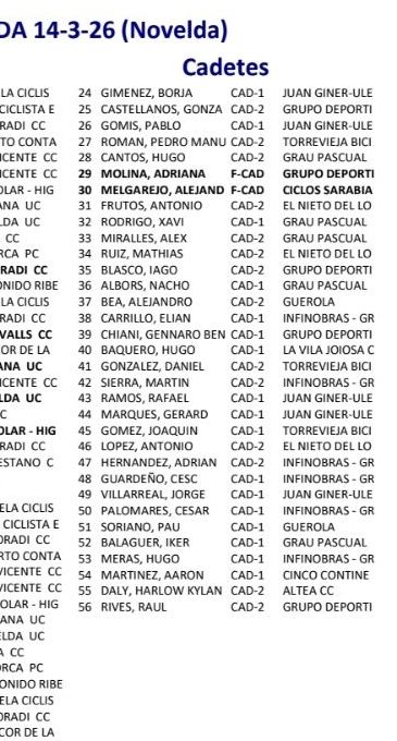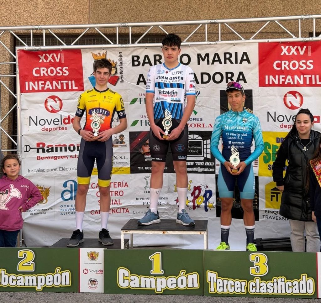 Javier Sáncho (Juan Giner Ulevel Vitaldinsport) se ha impuesto hoy en Novelda en el XXXVII Trofeo Barrio María Auxiliadora para ciclistas Cadetes. Mauro Pastor (GD Llopis) ha terminado segundo y Aitor Ros (El Nieto del Lobo) ha completado el podio. Adrian Molina (GD Llopis) se ha impuesto en la categoría femenina. Albert Jorqués (Juan Giner Ulevel Vitaldinsport), séptimo en carrera, ha sido el mejor Cadete de primer año.