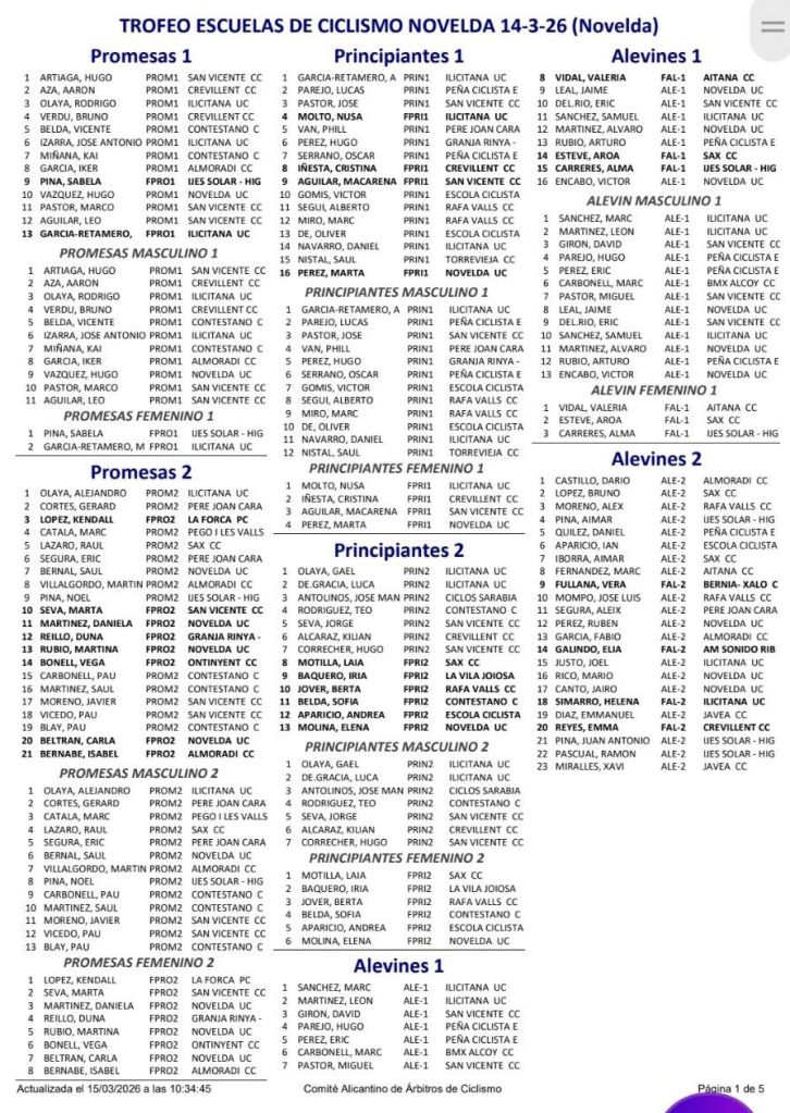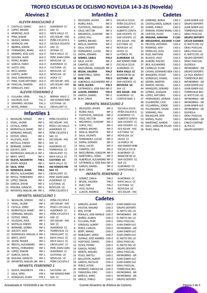15/03 Trofeo Escuelas de Ciclismo de Novelda. Clasificaciones