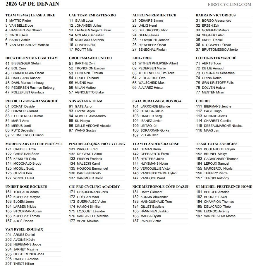 Hoy se disputa el GP de Denain 2026. La clásica francesa cuenta con un recorrido muy similar al de la edición anterior. Entre los participantes figura el benidormense Héctor Álvarez, que lucirá el maillot del Lidl-Trek. Serán 21 equipos en liza, incluido el Team Caja Rural-Seguros RGA.