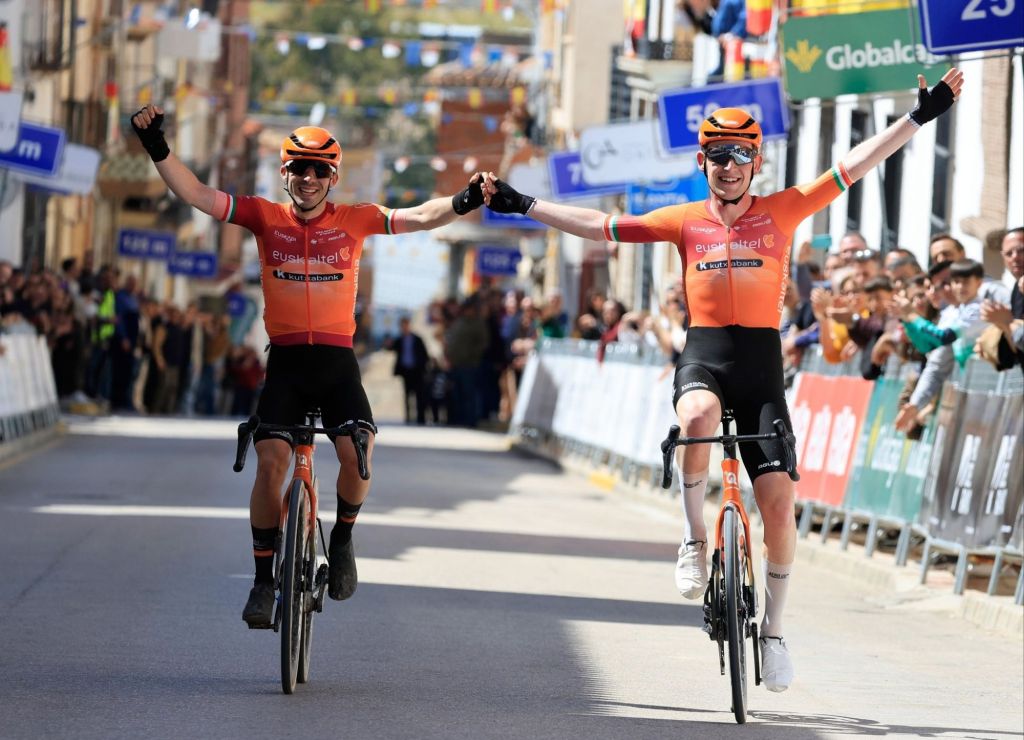 No dejó pasar ni un segundo Mintegi, que aprovechando la unión del sexteto se lanzó en solitario para conformar una nueva cabeza de carrera. Puntuó en el sprint especial del repecho del pantano y siguió abriendo hueco por encima de los 30 segundos en la parte inicial de «Sierra Parda». En un movimiento valiente, su compañero Van der Tuuk arrancó por detrás y soltó a los rivales, aprovechando la parte más técnica del sterrato. Fue capaz de unirse a su compañero y situar así a dos ciclistas de Euskaltel Euskadi liderando la carrera dentro de los últimos 30 kilómetros.