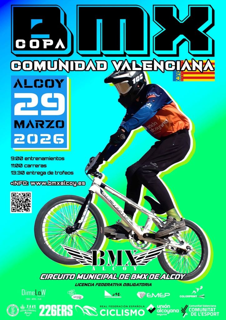 Los mejores y las mejores riders de la Comunidad Valenciana se citan en el Circuito Municipal BMX Alcoy este próximo domingo, 29 de marzo. Será la segunda prueba de la Copa BMX CV. A las nueve comenzarán los entrenamientos, las carreras, a las 11 horas, y, a las 13.30 tendrá lugar la entrega de trofeos.