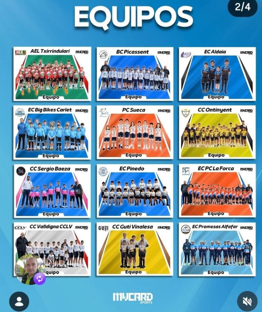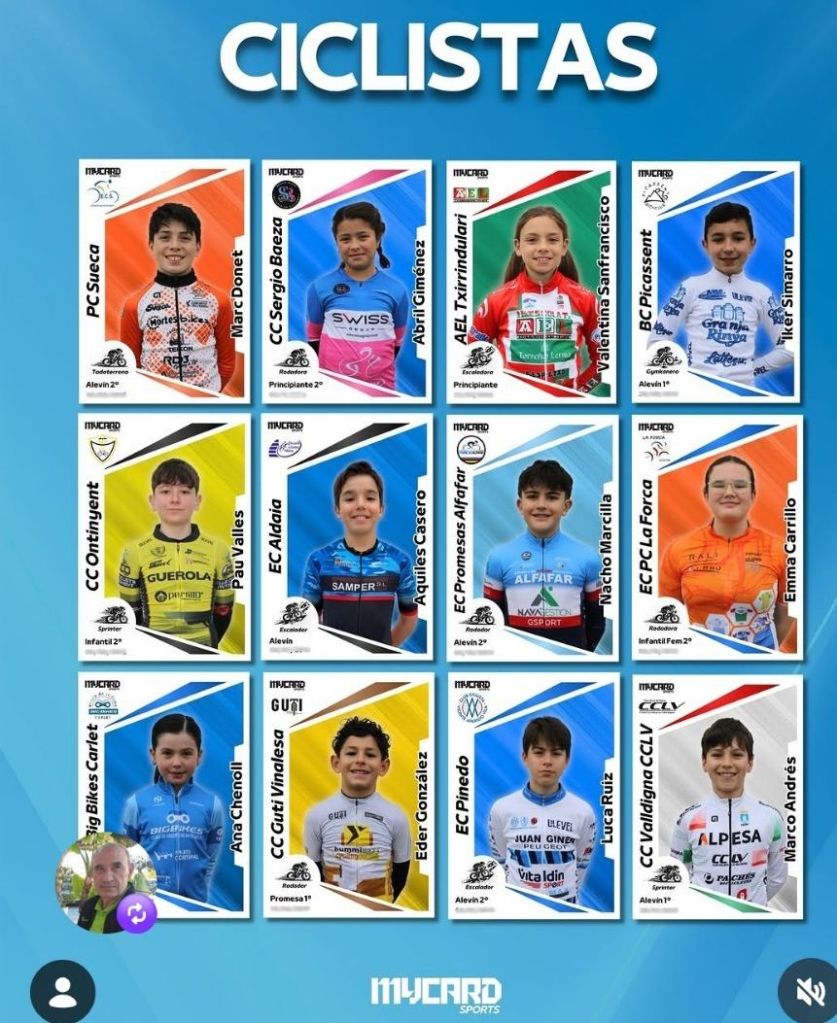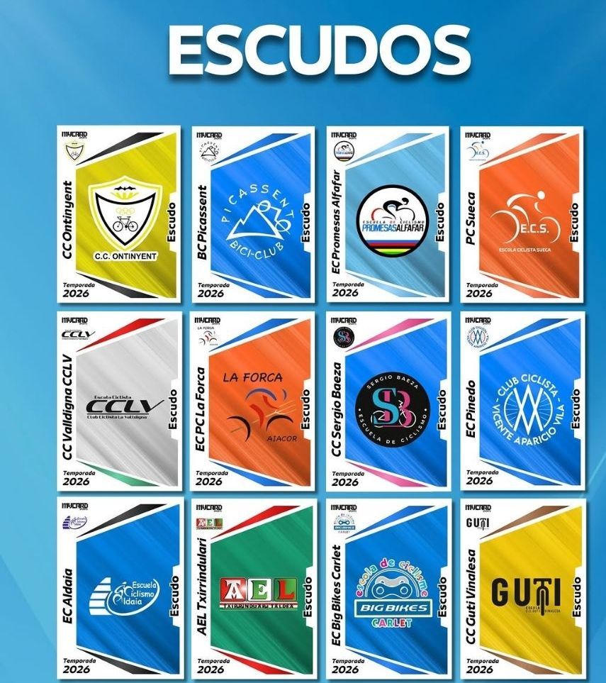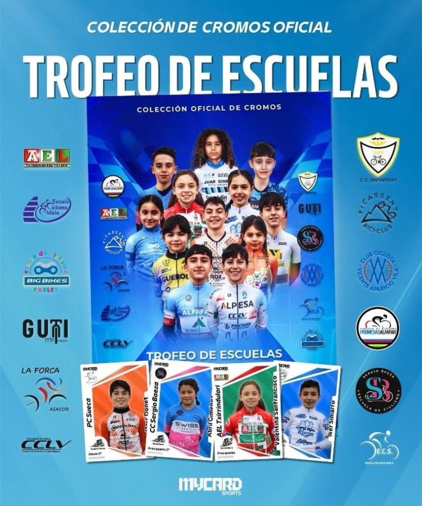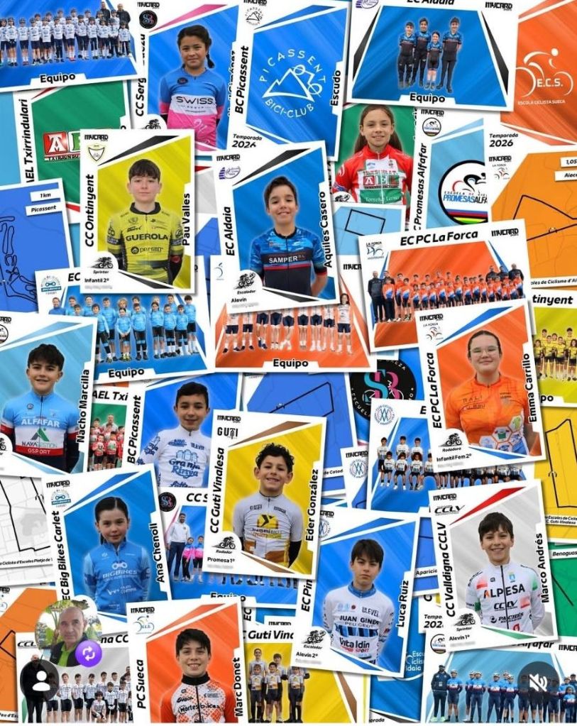La firma Mycard Sports ha confeccionado un álbum de cromos con todos los ciclistas de las Escuelas de Ciclismo que compiten en la Challenge Provincial de Valencia durante la temporada 2026. Una iniciativa encaminada a crear amistad, compañerismo y recuerdos entre los niños. Se entiende como una forma de que todos se sientan protagonistas y de que interactúen entre ellos en cada carrera al margen de la competición. «Al final, lo más importante no son los resultados, sino que disfruten del deporte, se conozcan y crezcan juntos como compañeros», se insiste desde las propios equipos.