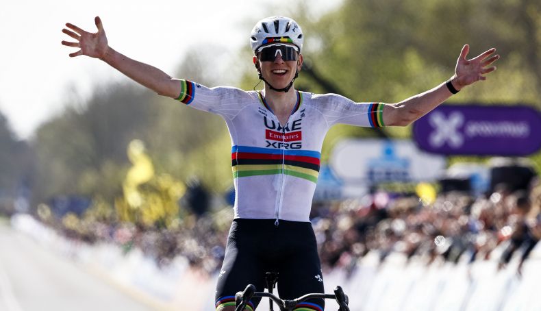 Sin embargo, la batalla tuvo su punto final antes de tiempo a 18 kilómetros de la línea de meta, cuando Tadej Pogacar, por enésima vez aceleró en la cota de Oude Kwaremont, y soltó a Van der Poel, que solo pudo quedarse expectante ante la superioridad del esloveno. Ya sin respuesta por detrás el campeón del mundo se marchó a más de 30 segundos y entró en el último kilómetros disfrutando de una hazaña más en su gloriosa carrera como ciclista profesional.