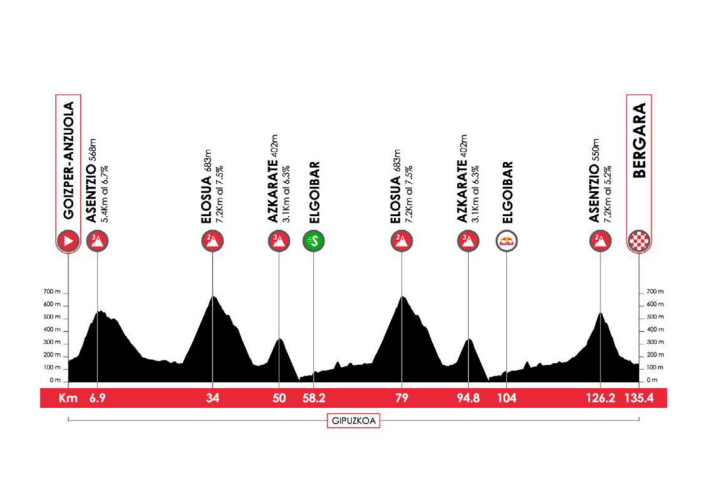 Basauri albergará la salida y llegada de la tercera entrega. Otros casi 3.000 metros de desnivel en día sin respiro, propicia para las emboscadas lejanas y para que los equipos controlen posibles peligros para sus líderes.