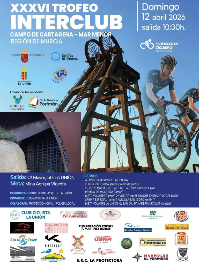 El Trofeo Interclub Campo de Cartagena Mar Menor Región de Murcia llega a su gran final en la subida a La Mina de La Unión. La prueba se disputa el domingo, 12 de abril, a partir de las 10.30 horas. Serán 79.3 kilómetros de recorrido.