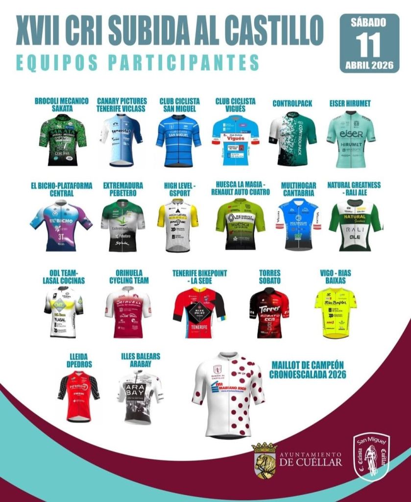 Cuéllar recibe este fin de semana al pelotón Élite y Sub 23. El sábado se disputa la Subida al Castillo y el domingo la tradicional Clásica de la Chuleta. Como antesala a esta cita, del 10 al 30 de abril, el patio del Ayuntamiento acogerá la exposición «Cuéllar, ciclismo y ciclistas», una muestra que recorre la historia y la vinculación de la localidad con este deporte. Podrá visitarse de lunes a viernes en horario de 8:00 a 15:00 horas.