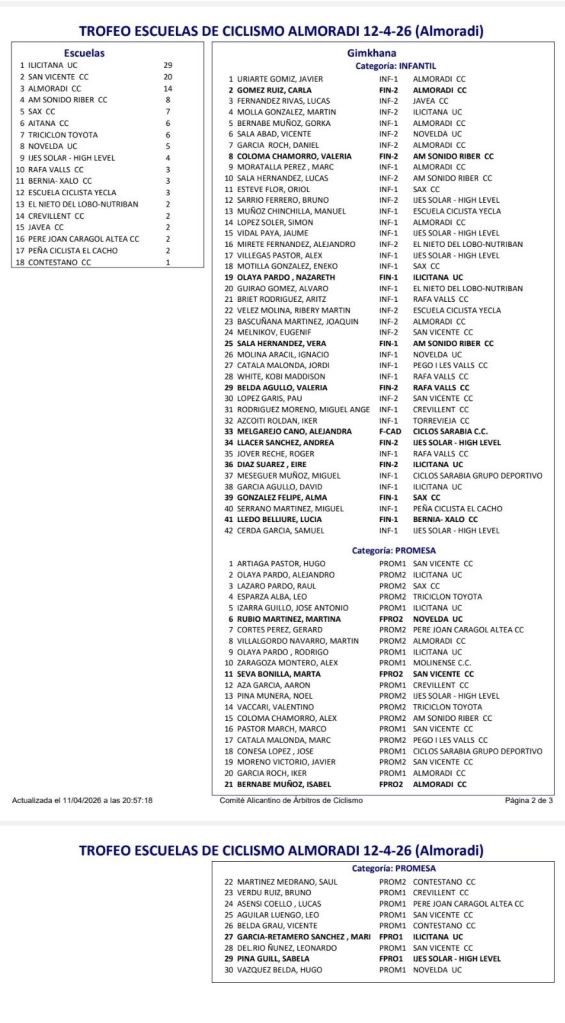 11/04 Trofeo Escuelas de Ciclismo Almoradí. Clasificaciones