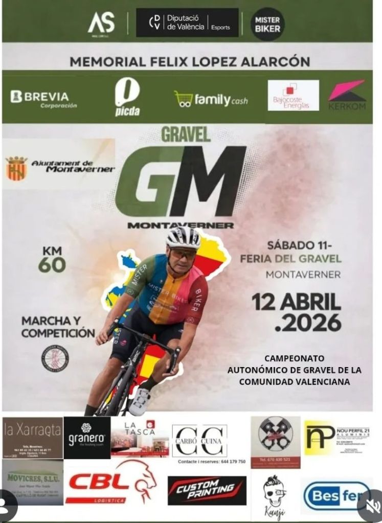 El Memorial Félix López Alarcón vestirá hoy en Montaverner a los nuevos campeones Autonómicos de Gravel. El recorrido cuenta con 58,96 kilómetros y un desnivel positivo de 913 metros. La salida se dará a las 10 horas. Entre los participantes figuran Raúl Mira y David Ivars.
