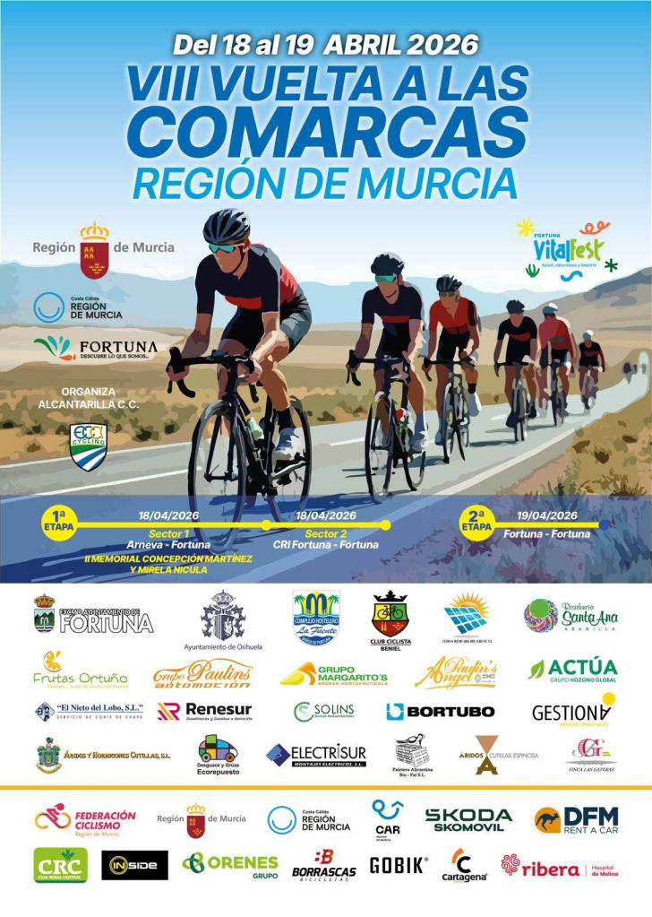 La VIII Vuelta a las Comarcas de la Región de Murcia para categoría Júnior se celebra este fin de semana dentro del Fortuna VitalFest, organizada por el CC Alcantarilla. Es una cita clave para jóvenes promesas ciclistas que recorre diversas zonas de la región. Fortuna VitalFest es el primer festival multideporte continuado de la Región de Murcia. Durante más de dos meses, cada fin de semana, Fortuna se transforma en un gran escenario donde se unen deporte, naturaleza, bienestar y comunidad.