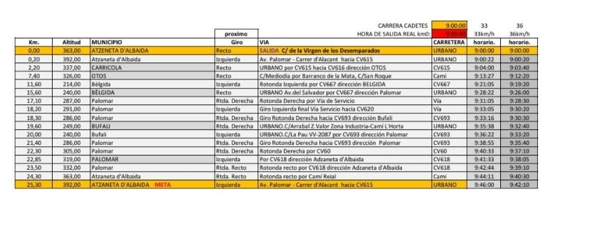 La carrera, que estará organizada por el Mandarina Cycling Club, se desarrollará sobre un circuito de 25,3 km que recorrerá las localidades de Atzeneta d’Albaida, Carrícola, Otos, Bélgida, Bufali y Palomar.