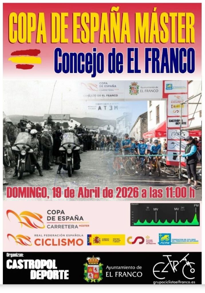 El certamen nacional viajará hasta Asturias, concretamente hasta el concejo de El Franco, para vivir una nueva prueba bajo una enorme participación. El Trofeo Máster El Franco, habitual del circuito nacional durante las últimas temporadas, ofrecerá un año más un recorrido quebrado que permitirá a los mejores corredores de la categoría exprimirse y brillar.