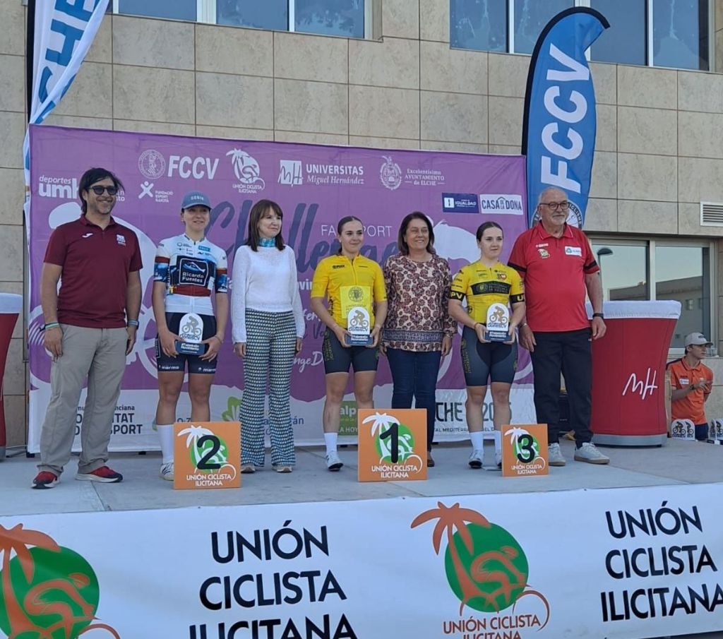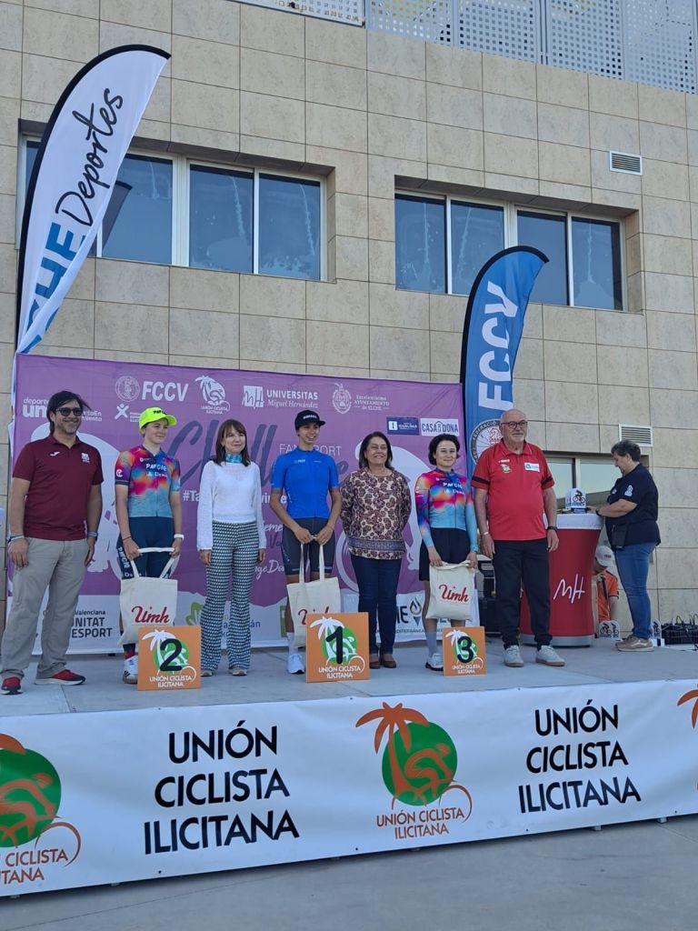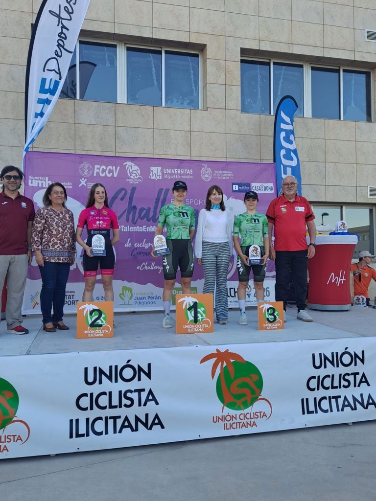 Vera Valero, Amanda Miravet y Ana Lospitao se han impuesto hoy en Elche en la III Carrera Ciclista Femenina ‘Talento en movimiento’, enmarcada en la IV Challenge de la Comunidad Femenina de Ciclismo, una competición organizada por la Universidad Miguel Hernández y la Unión Ciclista Ilicitana en colaboración con el Ayuntamiento de Elche.