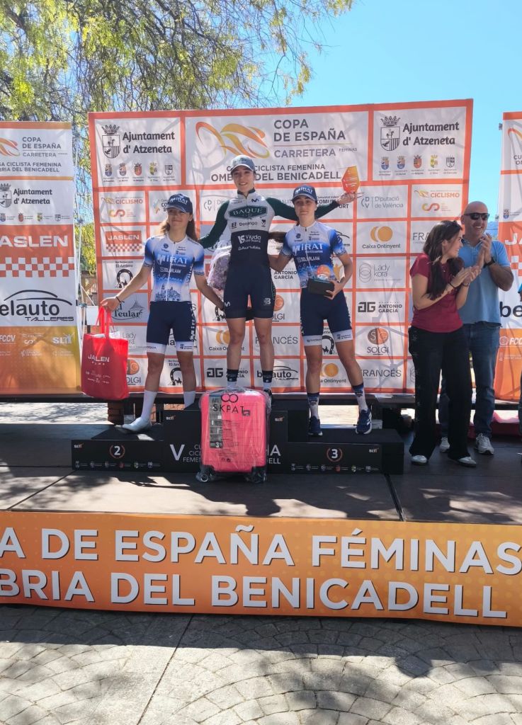 La Copa de España Féminas ha vivido hoy un nuevo capítulo con la disputa de su 5ª prueba puntuable en Atzeneta D’Albaida. El municipio valenciano ha acogido una Cursa Ciclista Femenina Ombria del Benicadell en la que se ha impuesto en categoría élite-Sub23 la joven Izaro Etxarri, la más rápida al sprint por delante de Leyre Almena y Julieta Benedetti.