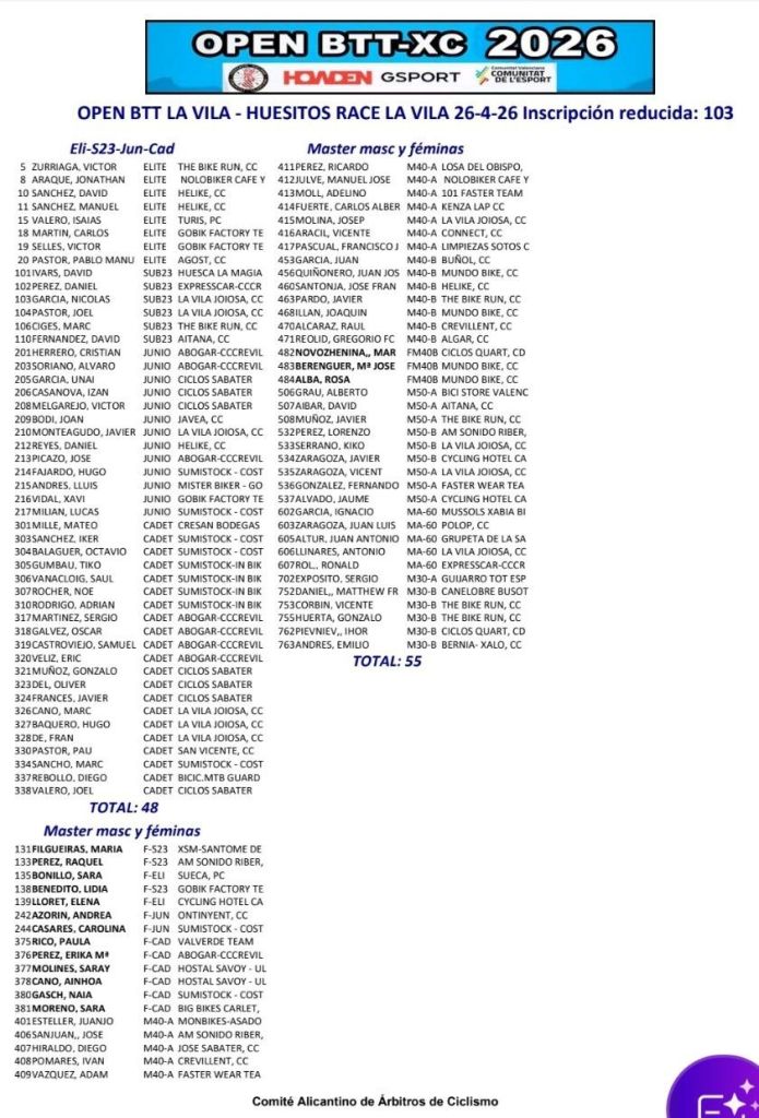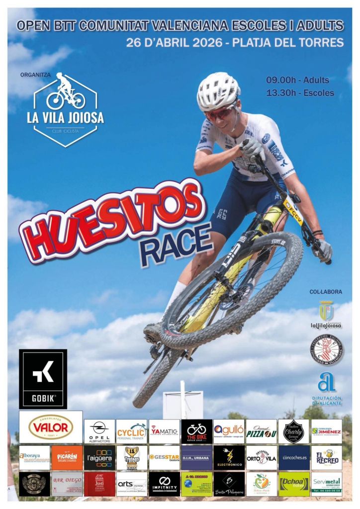 El domingo, 26 de abril de 2026, se disputa en La Vila la segunda prueba del Open BTT-XC de la Comunitat Valenciana. La denominada Huesitos RACE reunirá a partir de las 9 horas a las categorías de adultos y, posteriormente, a las 13.30, las Escuelas serán las protagonistas. El Club Ciclista La Vila Joiosa ha diseñado unos circuitos técnicos y divertidos que harán disfrutar a los participantes en la Platja del Torres.