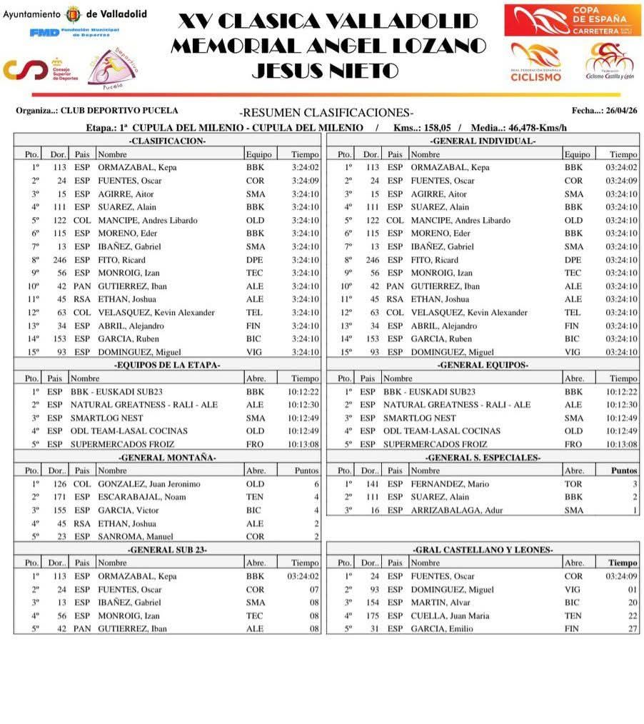 La Copa de España Élite-Sub23 ha vivido este domingo 26 de abril su sexto capítulo con la disputa de la Clásica Valladolid – Memorial Ángel Lozano y Jesús Nieto, una jornada marcada por el nerviosismo, la dureza del terreno y los continuos cambios en el desarrollo de la carrera. Finalmente, Kepa Ormazabal, del BBK-Euskadi Sub-23, ha sabido resolver a la perfección un desenlace muy abierto para hacerse con la victoria en la capital vallisoletana.