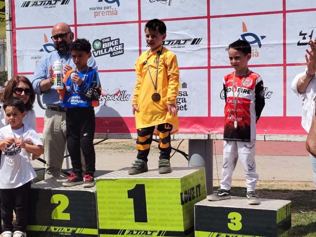 Los corredores del BMX Alcoy, Liam Oviedo, en categoría Promesas 5-6 años, y Pau Gandía, en Alevines, lograron subir al podium. AVANCE
