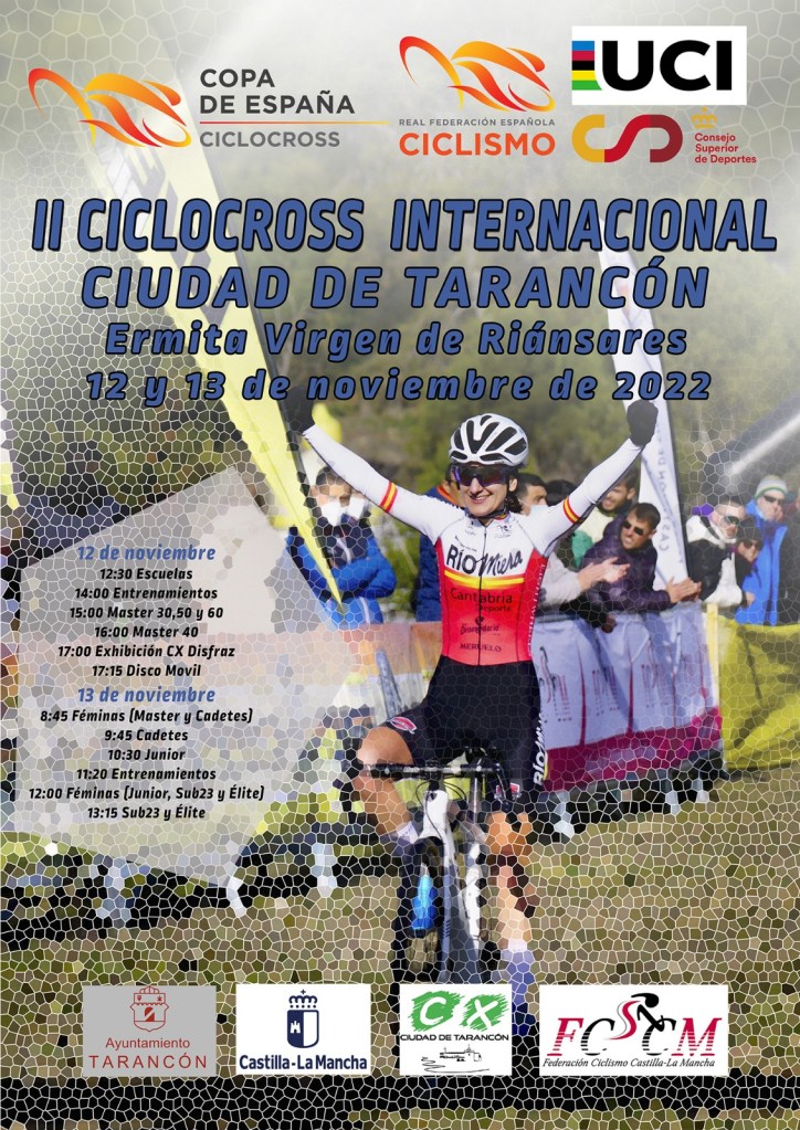 Este fin de semana, los días 12 y 13 de noviembre, Tarancón acoge la sexta cita de la Copa de España de ciclocross. Como ya ocurriese el año pasado donde se proclamaron campeones del certamen Aida Nuño e Ismael Esteban, el circuito Juan Carlos de la Ossa, con una longitud de 2.800 metros, volverá a poner a prueba las capacidades técnicas y físicas sobre la bicicleta de los cerca de 400 participantes inscritos en el certamen.