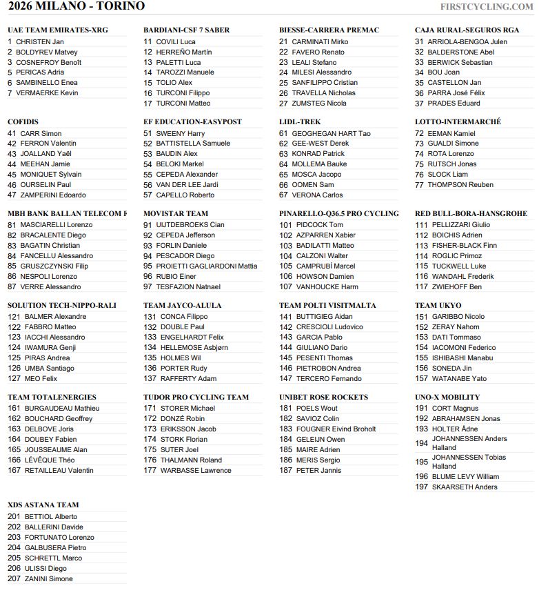 La 107ª edición de la Milán-Turín (UCI ProSeries), la cita más antigua del calendario que cumple en 2026 sus 150 años de existencia, se disputa el miércoles 18 de marzo. El trazado, completamente plano hasta los últimos 25 km, comprende dos exigentes subidas finales a la icónica y tradicional Basílica de Superga. Después de varias ediciones variando su enfoque, la clásica transalpina repetirá el formato utilizado el pasado año presentando un doble ascenso a la Basílica de Superga como punto culmen de un recorrido destinado de este modo a escaladores puros, ya que la subida cuenta con un desnivel medio superior al 9% en sus 4 km.