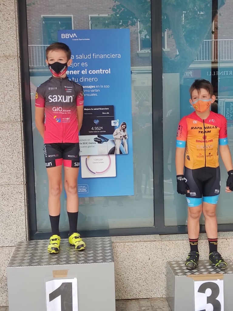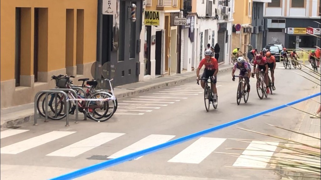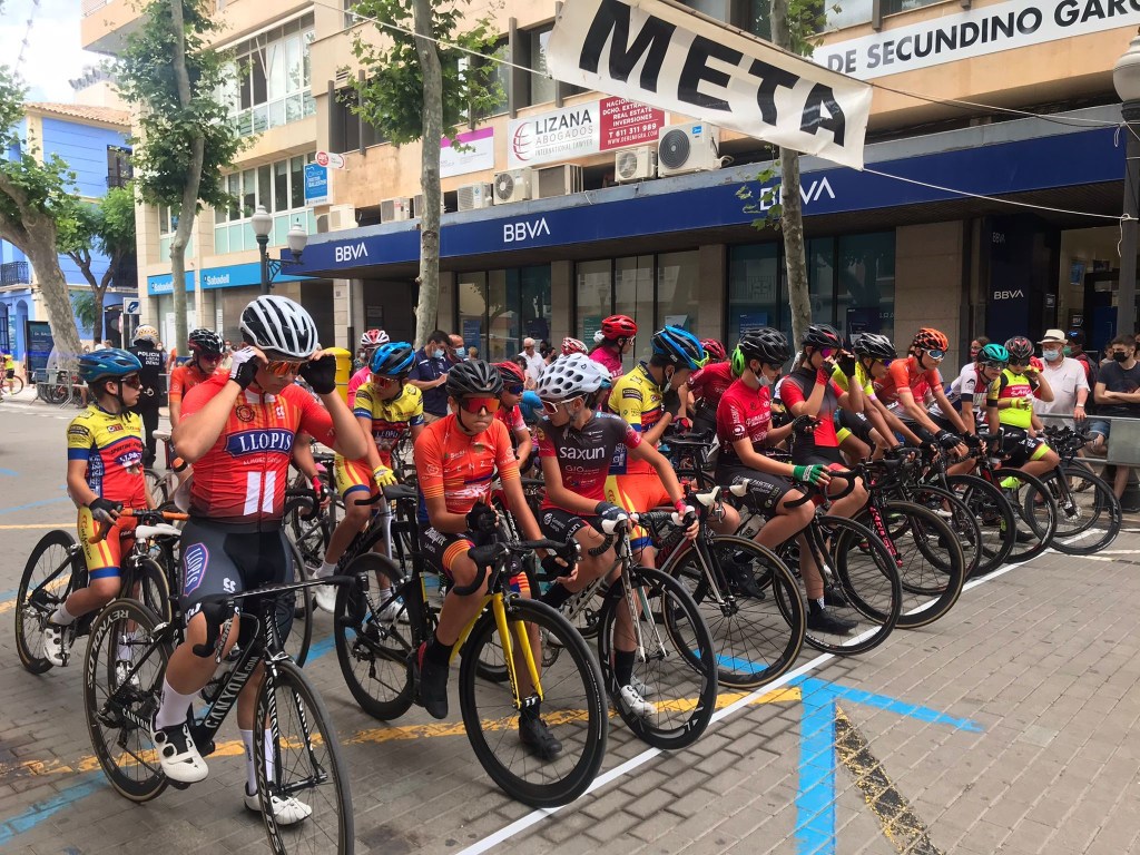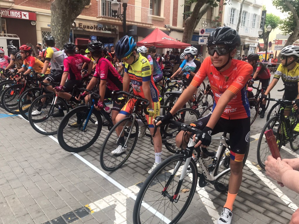 Un momento de la carrera de Infantiles en Dénia. Foto. Ciclismo LevanteEl podio de Infantiles 2, con Óscar Orts, José Ramón Guijarrro e Iker Mortes.