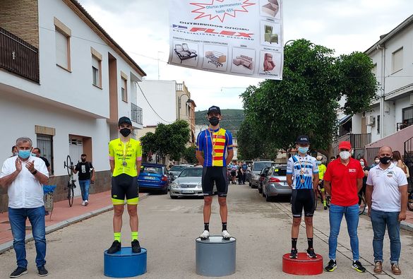 El podio de la Vuelta a Molinicos con Manuel Sanroma de amarillo.