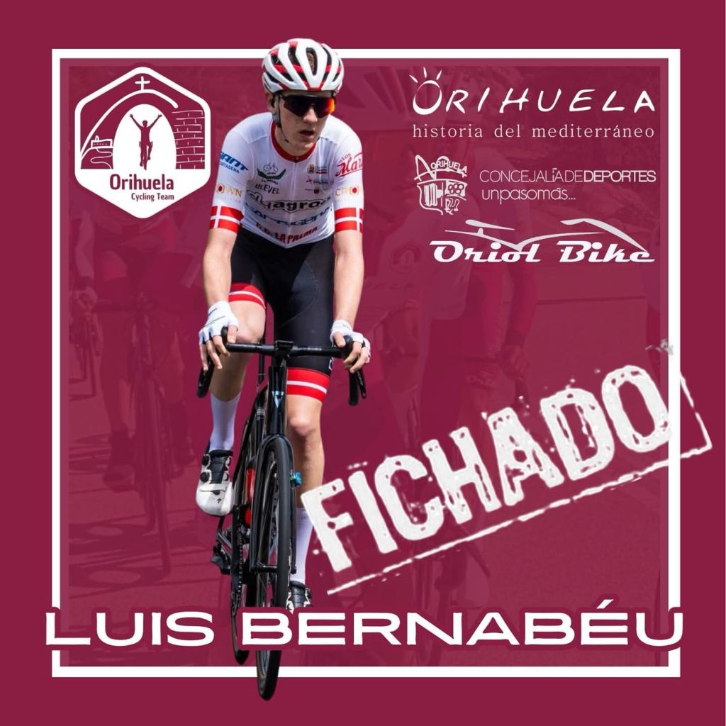 Luis Bernabeu Pérez (Tibi, 12 de mayo 2007) debutará como Sub 23 en el Orihuela Cycling Team tras sus dos años como júnior en el Equipo Ciclista Cartagena. Un nuevo paso adelante en su carrera que se inició en el CC Tibi-AM Sonido y tuvo su paso por la UC Ilicitana en sus dos campañas de cadete. «Intento ver este salto como uno más, aunque sé que será el más grande hasta ahora. Un paso importante y, aunque con calma, tengo muchas ganas de afrontarlo. Al fin y al cabo, es una oportunidad más para seguir creciendo», dice el ciclista de Tibi que ya ha coincidido en varias carreras Cadete y Júnior con que va a ser su nuevo director, Manuel Mateo.