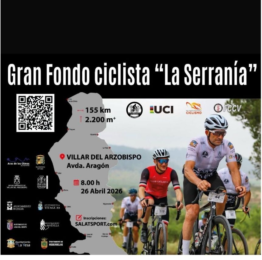 La organización de la Gran Fondo Ciclista La Serranía, prevista para el 26 de abril, ha informado que la «prueba queda suspendida». La carrera tenía salida y meta en Villar del Arzobispo y según los organizadores «esta decisión se ha tomado por motivos ajenos de la organización».