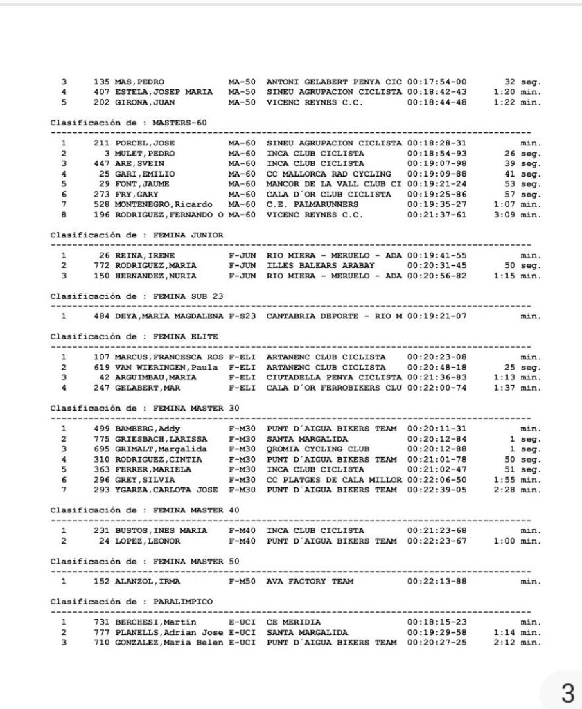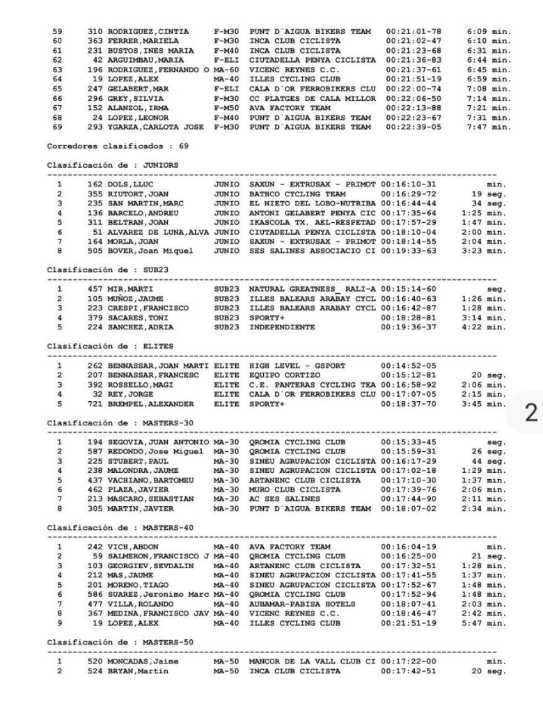 En la manga 2, triunfo en Júnior de Xavi Mestre (Juan Ayuso), Estanislao Calabuig (Filial Caja Rural ), lo ha hecho en Sub 23, y Jonas Hjorth (Ulevel Frutamine), en Élite. Mestre ha estado acompañado en el podio de Álvaro Sansano (Baqué ) y Calabuig, de Pablo García (Froiz) y Alejandro Mereciano (High Level Gsport) ; y Hjorth, de Félix Rodríguez (El Bicho) y Óscar Moscardó (Essax). Además, Francisco Torrella (Gsport) ha sido el vencedor en M40 y Sergio Verdú (Aluminios Cayvi), en M30.. AVANCE