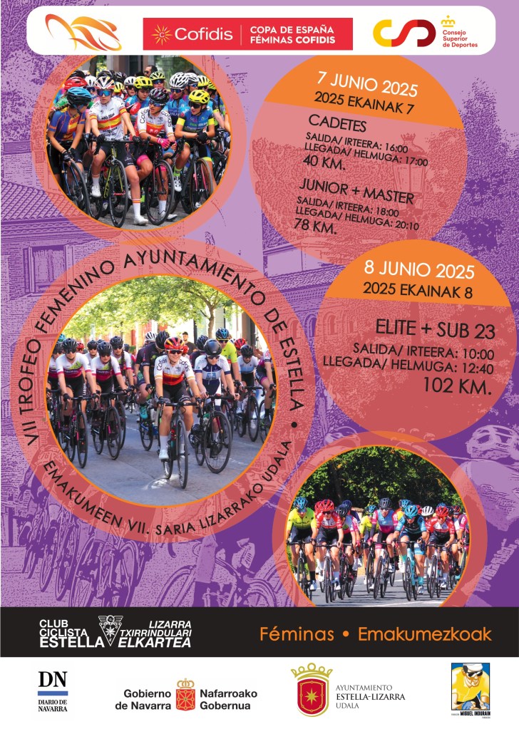 La prueba navarra, que será la quinta cita de las siete que comprende el calendario 2025 del circuito nacional femenino de carretera, presentará un formato compuesto por dos días de competición: durante la tarde del sábado se celebrarán las carreras cadete y junior-máster, mientras que el domingo tendrá lugar la carrera élite-sub23.