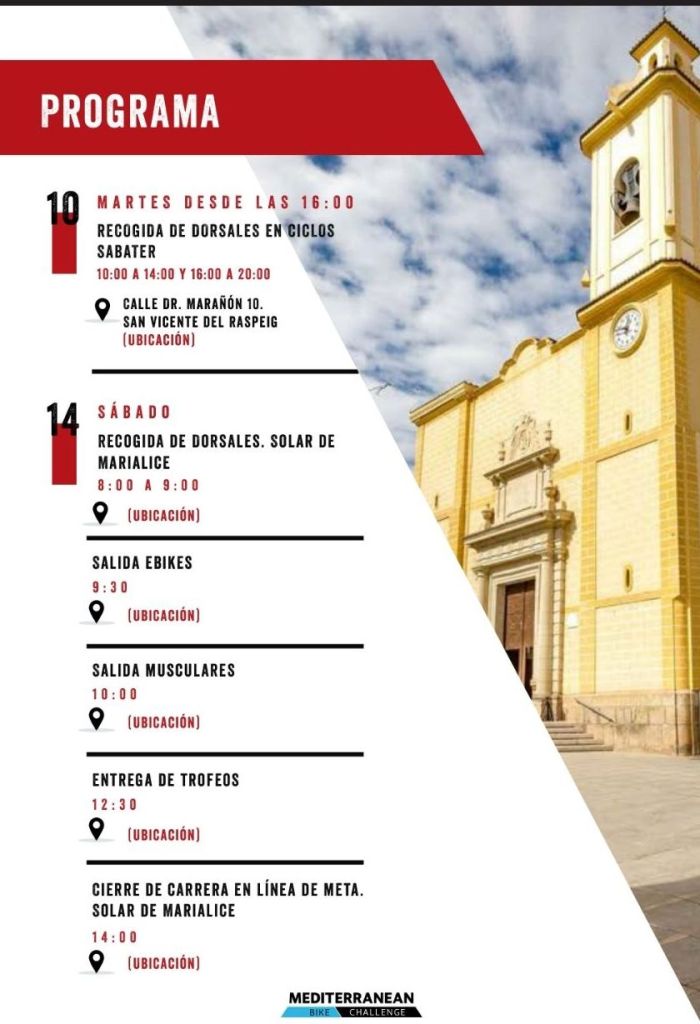 San Vicente del Raspeig acogerá el sábado, 14 de diciembre, una nueva convocatoria de la Marcha Xmas Classic, cuarta prueba de la Mediterranean Bike Challenge. En su decimoquinta edición, la carrera saldrá desde el solar de Marialice a las 9.30 horas. El recorrido de la cuarta prueba de la Mediterranean Bike Challenge, tendrá un total de 40 km y un desnivel positivo de 900 metros aproximadamente.