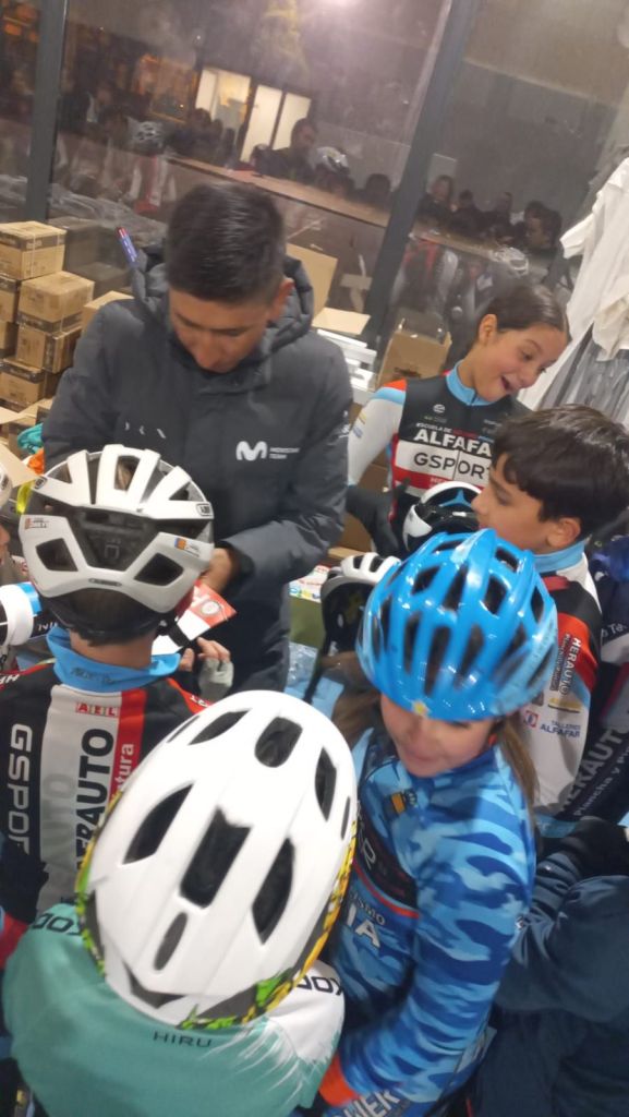 Quintana y Sánchez, en un gesto que hay que agradecer, estuvieron toda la tarde con la Escuela de Ciclismo de Alfafar y la de Aldaia compartiendo vivencias, firmando autógrafos, regalando equipajes, bidones, gorras, etc.