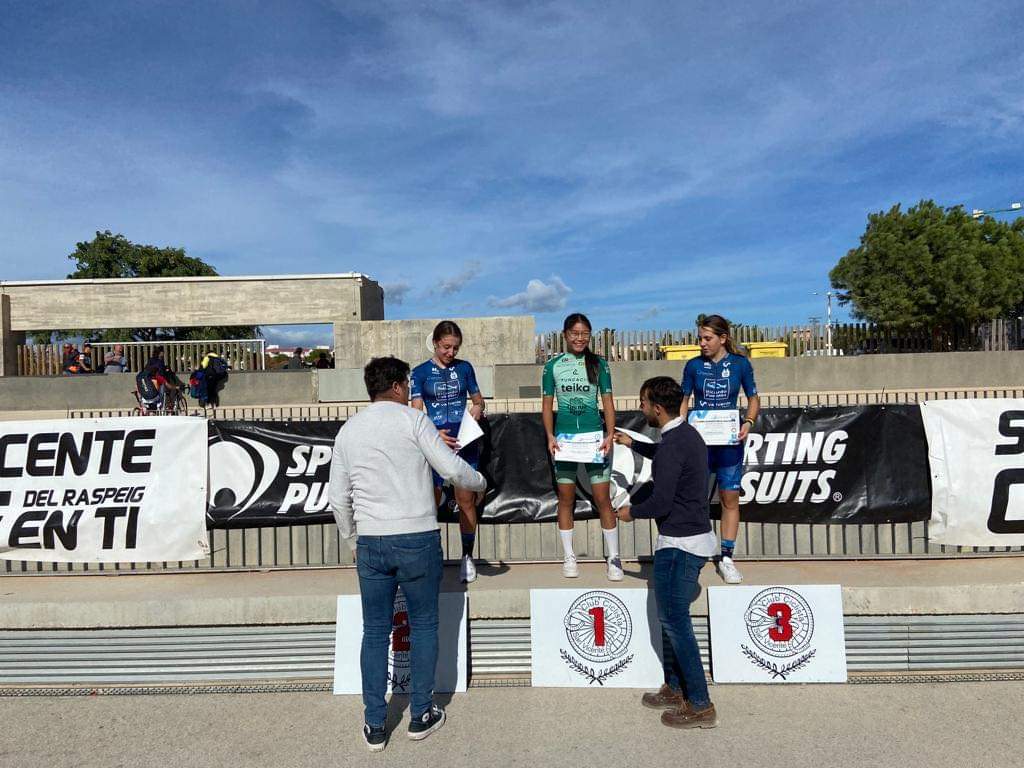 En cuanto a la prueba femenina, que unió a júniors y cadetes, Leyre Toledo y Candela Cazorla fueron las dominadoras.La primera se impuso en scratch y tempo y la segunda, en la eliminación, antes de que la noveldense ganara la puntuación, para sumar 153 puntos, por 121 de su compañera. La cadete Luz Márquez y la júnior Tania Silvente, del Valverde Team, se clasificaban a continuación con 114 y 111 puntos.