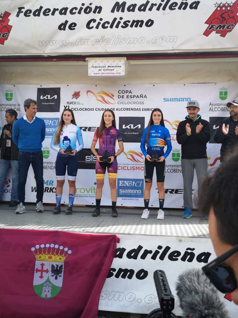 En lo que respecta a las féminas, Irene Trabazo llegaba a Alcobendas con la vitola de líder, pero le tocaba bregar contra rivales que son favoritas a la victoria final, como es el caso de Lucía González y Sofía Rodríguez. Las corredoras del Nesta, ausentes en Les Franqueses y en Karrantza, volvieron a ser protagonistas en la salida, rompiendo la carrera desde el primer momento. La gallega se agarró a sus ruedas; sin embargo, no pudo mantener el fuerte ritmo de sus rivales durante muchas vueltas, y finalmente, decidió conservar su posición, ante una Alicia González, que no pudo alcanzar a la del XSM.