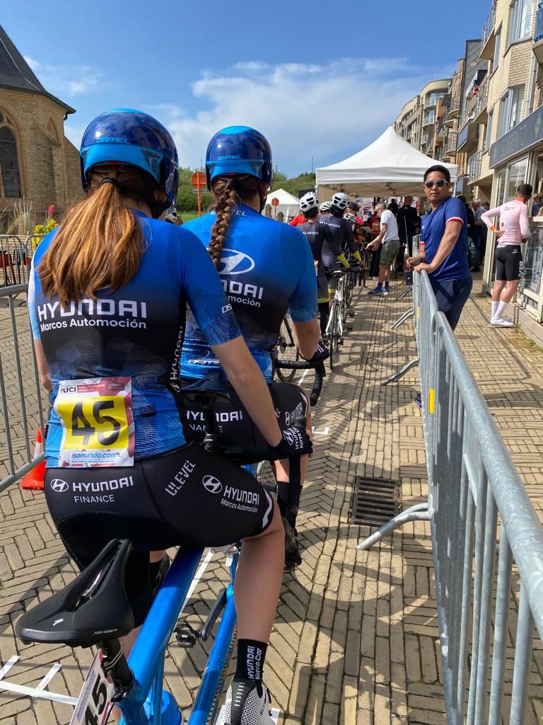 Por su parte, el dúo formador por Inma Martínez y Melisa Gómiz ha hecho realidad un sueño: Poder disputar de una contrarreloj al lado de las mejores ciclistas del mundo. «Hemos terminado reventadas, pero muy contentas», señalaba una satisfecha Inma antes de comentar que «para el nivel que nosotras tenemos la crono ha sido muy buena. Estoy viviendo una situación única, no sabemos si podremos repetirla, y estamos disfrutando mucho el momento. Lo hemos dado todo y para ser nuestra primera experiencia terminamos las dos muy contentas». La almoradidense no duda en afirmar que «de aquí para arriba». Ambas se pellizcan para comprobar que esto que están viviendo no es un sueño.