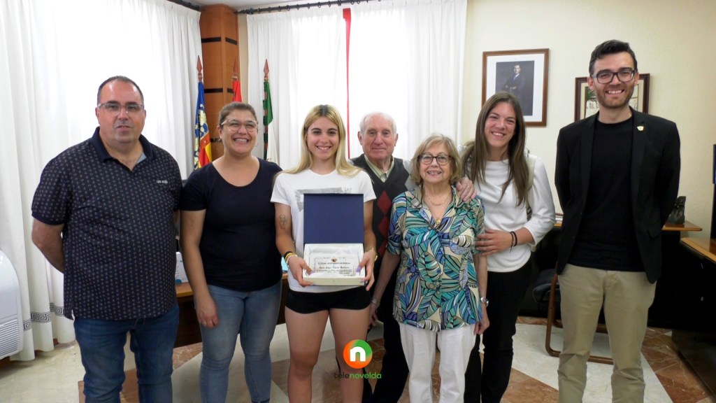 El alcalde de Novelda, Francisco Martínez, y el concejal de Deportes, Carlos Vizcaíno, han recibido esta mañana a la ciclista noveldense Leyre Toledo, campeona de España y Autonómica, en diferentes modalidades de ciclismo en pista. A la actual corredora del Teika-Granja Rinya se le ha entregado una placa en la que se reconoce su trayectoria deportiva, sin olvidar que gracias su día a día encima de una bicicleta, en la búsqueda de sus sueños, es «un ejemplo de tenacidad, trabajo y profesionalidad para la juventud».